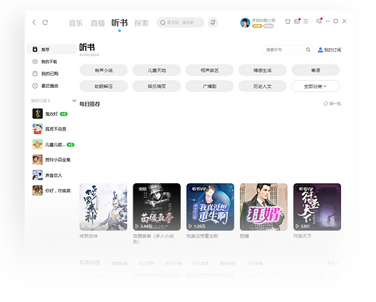 有声小说、相声曲艺、娱乐搞笑、历史人文、